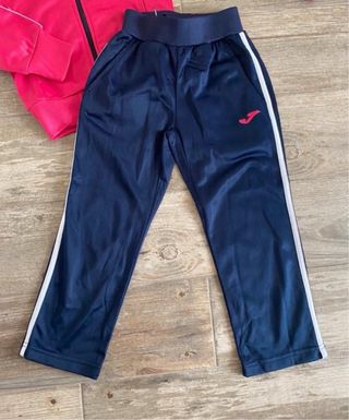 Conjunto deportivo Joma para niño/a. - Chaqueta con cremallera completa. - Pantalón con cintura elástica. - Diseño deportivo con detalles. - Tejido cómodo y transpirable. - Tiene dos manchitas que se muestran en foto.