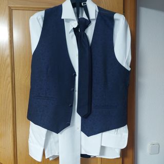 Conjunto de traje de chaqueta con chaleco y dos corbatas. - Chaqueta de traje. - Chaleco a juego. - Dos corbatas incluidas. Talla chaqueta 46. Pantalón 38/40