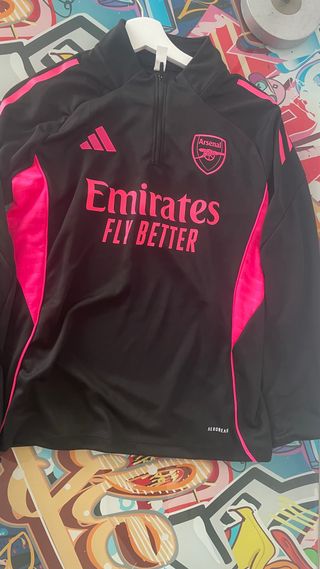 Chaqueta deportiva del Arsenal con detalles llamativos. - Diseño con cremallera parcial. - Paneles laterales en contraste. - Logo del club y patrocinador. - Tecnología Aeroready.