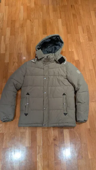 Chaqueta acolchada con capucha. Tiene los bolsillos muy grandes, tiene en las mangas alguna marca de uso pero está cuidada