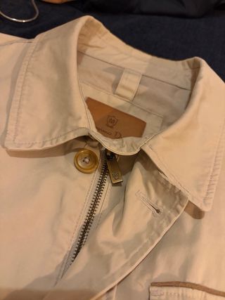 Chaqueta premium de entretiempo en color beige para hombre. | Specs | - Cierre de cremallera - Bolsillos laterales con cremallera - Cuello alto - Detalle Lacoste a juego - Capucha oculta en el cuello con cierre de velcro /// Talla M /// (Mido 1,80m para que te hagas una idea) Fue un regalo y me queda pequeña. Puesta en 2 ocasiones.