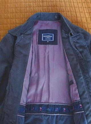 Chaquetón gris oscuro, marca “BORDONAL Classic Fashion”. Cierre con botones, cuatro bolsillos exteriores, (dos frontales y otros dos laterales) y uno más interior. Talla XL 52 pero se puede considerar también como una XXL. Medidas: anchura entre hombros 53 cm. y de hombro hasta abajo 75 cm. En buen estado.