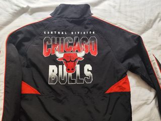 Chaqueta deportiva con el logo de los Chicago Bulls. - Diseño Central Division. - Combinación de colores negro y rojo.