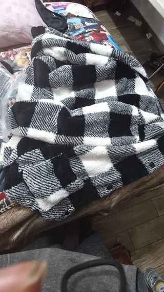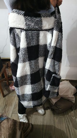 Chaqueta de invierno con un diseño de cuadros muy acogedor. - Material afelpado para mayor calidez. precio retavle - Patrón de cuadros en blanco y negro.