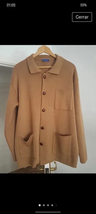 Con dos bolsillos delanteros y uno pequeño en el pecho. Con botones delanteros. 50% Acrílico y 50% lana merino. No viene la talla , pero da mucha talla. Medidas. Anchura pecho 62 cms, anchura de hombros 56 cms. Longitud desde el hombro hasta el bajo 74 cms. Longitud de manga 60 cms. Perfecto estado. #chaquetapuntohombre #jerseypuntohombre #chaquetabeige #chaquetahombrevintage