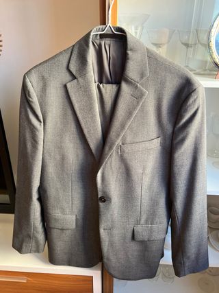 Traje de chaqueta y pantalón en color gris. - Chaqueta con un botón. - Bolsillos frontales en la chaqueta. - Pantalón a juego.