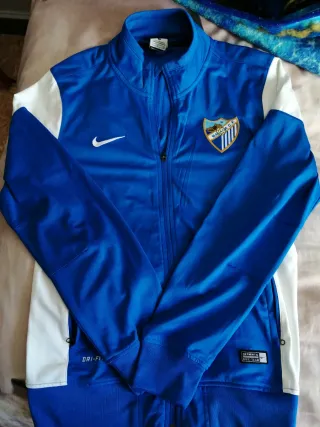 Chaqueta deportiva del Málaga Club de Fútbol. - Diseño con paneles blancos en los laterales y mangas. - Logo de Niike bordado en el pecho. - Escudo del Málaga CF en el pecho. - Cremallera frontal completa. - Bolsillos laterales con cremallera. Talla S. 0riginal. Cómo nueva NO REBAJO!!