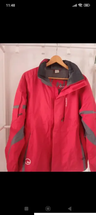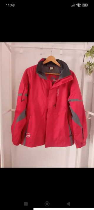 Chaqueta de la marca Klepper en color rojo. - Diseño moderno con detalles en negro. - Cremalleras frontales y en los bolsillos. - Cuello alto con ajuste. - Puños ajustables. tiene una pequeña mancha en el brazo y viene sin capucha . (talla M/L)
