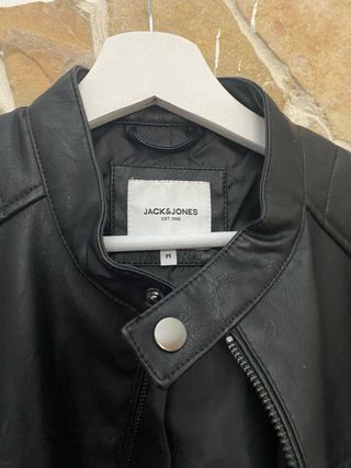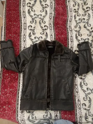 Chaqueta de piel sintética con un diseño moderno. Talla L - Cuello redondo. - Cierre de cremallera frontal. - Bolsillos con cremallera. - Puños y hombros con detalle acolchado.