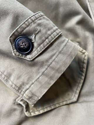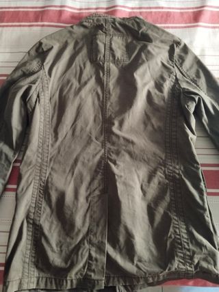 Chaqueta de Springfield en color verde oliva. Presenta un diseño con cuello alto y cierre de botones. No se ha usado mucho, es fina - Cuatro bolsillos frontales con solapa. - Bolsillo interior. - Puños ajustables con botón. - Detalle de hombreras.