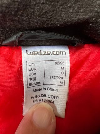 Chaqueta acolchada Decathlon con un diseño reversible. - Exterior negro brillante. - Interior de color rojo vivo. - Cuello alto para mayor protección. - Cremallera frontal.