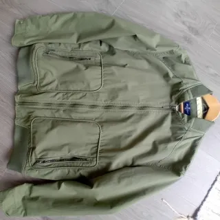 Chaqueta estilo bomber en color caqui. Presenta un diseño moderno con múltiples bolsillos. - Cierre frontal con cremallera. - Dos bolsillos superiores con cremallera. - Dos bolsillos inferiores con solapa y cremallera. - Puños y cintura elásticos.