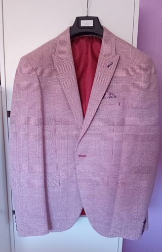 Elegante chaqueta para caballero en tonos blanco y rojo. Está en muy buen estado. - Diseño de cuadros. - Forro interior rojo - Talla 50