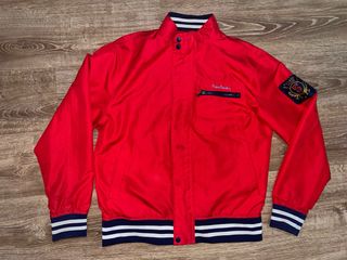 Chaqueta deportiva de Pierre Cardin en color rojo. - Cierre de botones a presión. - Bolsillo con cremallera en el pecho. - Puños y cuello con detalles de rayas. - Parche decorativo en la manga.