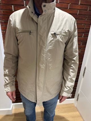 Se vende bonita chaqueta de caballero de la marca Massimo Dutti, talla L. Tiene una especie de forro interior desmontable, bordes con ante marrón, cierres de cuello y puños forrados de piel en perfecto estado. Ajuste en cintura y puños. Tiene capucha oculta y dos bolsillos interiores. Esta en perfecto estado como se ve en las fotos.
