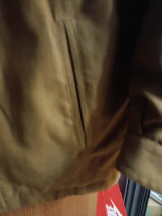 Cazadora Quicksilver, talla S, con algo de pluma y estampado de camuflaje militar, 100% polyester. Diseño acolchado, con capucha, cierre frontal y bolsillos de cremallera, puños y bajo con goma. Lleva como se ve en la foto una rajita de 2cm que se puede coser o colocar algo para taparlo y algo despegado el logo. Por lo demás está en perfecto estado. Sin ningún otro desperfecto.