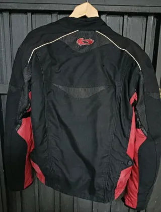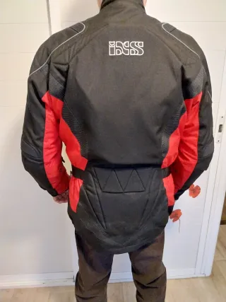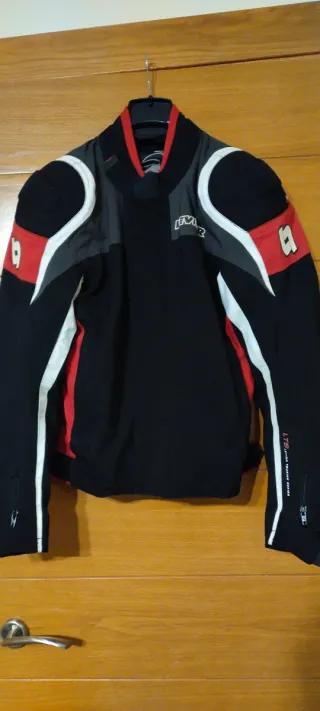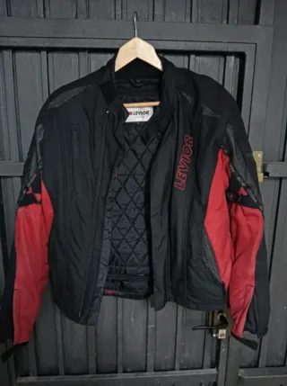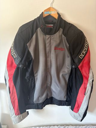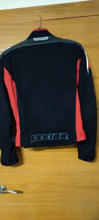 Chaqueta de moto Levior talla L, equivalente a una 42/52. Es de color negro y rojo, con detalles en malla. Se encuentra en buen estado, sin caídas, sin roces, con velcros y cremalleras funcionando perfectamente, sin rotos, solo un punto descosido en la espalda y en el color se nota uso. Con forro interior desmontable para invierno y con proteccion en la espalda. Sin protecciones en codos ni hombros pero con bolsillos para ellas. Vendo por quedarme pequeña, tener otras chaquetas y ocupar espacio. Recién lavada y saneada. - Talla: L - Marca: LEVIOR. - Colores: Negro y Rojo Admito cambio por casco integral o modular talla L 59-60cm).