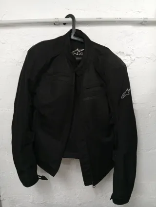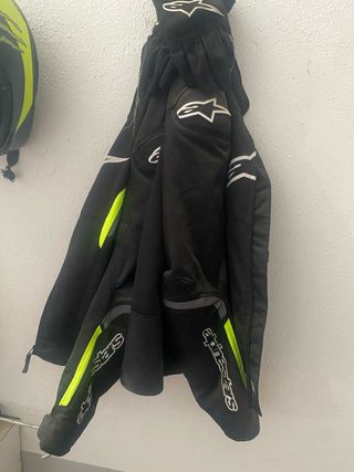 Chaqueta de moto Alpinestars para verano.La compre que me iba justa y nunca me llego a entrar asi que no le he dado mucho uso. Esta muy bien cuidada en la foto tiene un poco de polvo por aue esta colgada, se lavara antes del envio. - Diseño en color negro con detalles en amarillo neón. - Logos de Alpinestars en blanco.