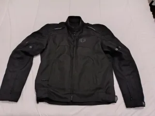Chaqueta de moto de la marca Revit en talla M. Estilo Sport Urban. - Color negro. - Impermeable. Forro polar desmontable. -Protecciones en hombros, codos y espalda (extraible). Homologadas. - Detalles reflectantes en mangas y espalda. - Cierre frontal con cremallera y solapa. - Bolsillos frontales con solapa. Bolsillo interior grande y bolsillo para cartera o móvil en el pecho. -Puños, cintura y cadera ajustables.