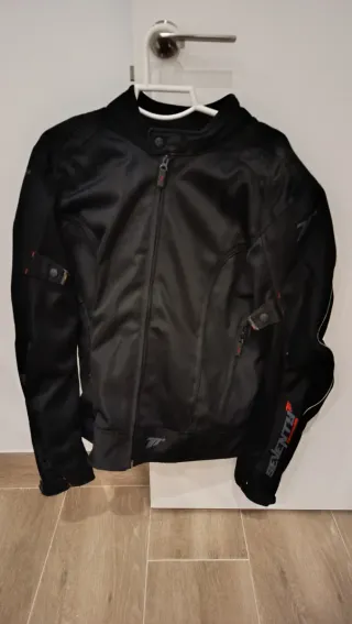 Chaqueta de moto de verano en color negro. Talla L - Diseño moderno y funcional. - Materiales transpirables para mayor comodidad. - Detalles en rojo y logo de la marca.