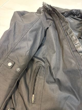 Chaqueta de moto negra, ideal para protegerte en tus rutas. - Cierre frontal con cremallera y botones. - Bolsillos frontales con solapa y botón. - Cintura ajustable con cordón. - Puños ajustables con velcro. - Detalles reflectantes en mangas y espalda. - Incluye forro para invierno - Talla L