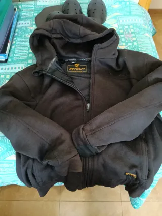 Chaqueta sudadera negra con capucha, ideal para moto. - Marca R-Tech. - Cierre de cremallera. - Bolsillos frontales.