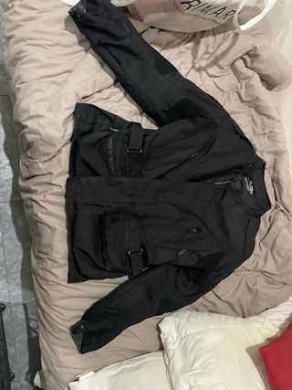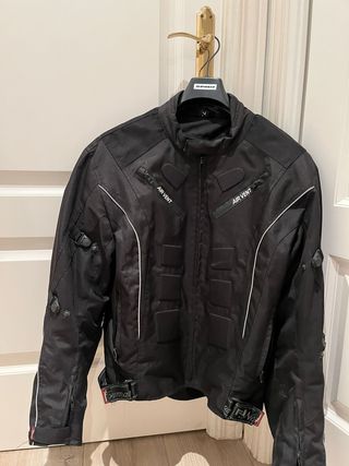 Chaqueta de moto de la marca ARMURE en color negro. - Talla L - Protecciones Nivel 2 (espaldera, hombreras y coderas) - Invierno/verano (forro desmontable) - Multiples ajustable en la cintura, brazos y muñeca. - Marcado CE *ESTA COMO NUEVA. Se ha usado únicamente para obtener el carnet. SI COMPRAS CONJUNTO COMPLETO (chaqueta, pantalón y botas - ver perfil -) 150€ EN TOTAL.
