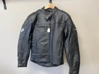 Chaqueta de piel de estilo motero, ideal para protegerte en tus rutas. - Diseño clásico y resistente. - Cierre frontal con cremallera. - Múltiples bolsillos.