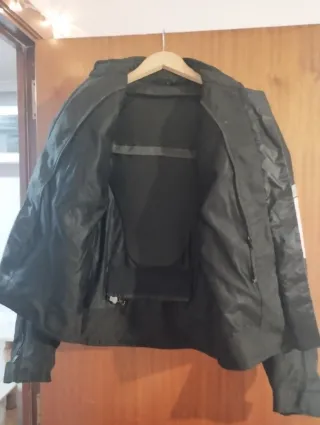 Chaqueta para moto talla L ajustada. Tiene forro extraible y viene con protecciones en codos y hombros.