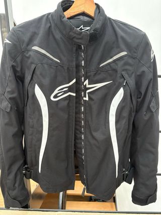 Chaqueta de motorista Alpinestars en color negro y talla M. Cuenta con un sistema de control climático. - Detalles reflectantes en mangas y frontal. - Cierre de cremallera y velcro. - Cuello alto con ajuste.
