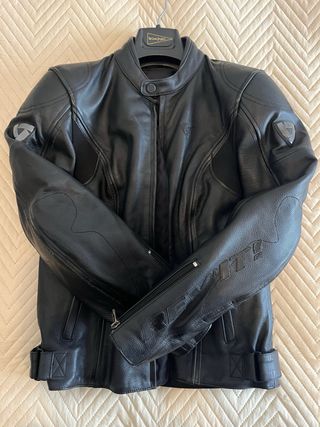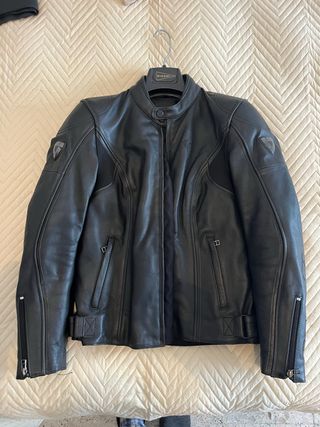 Chaqueta de piel para moto con un diseño deportivo, de orientación urbana y ceñida. NUEVA SIN USAR. Marca: REV’IT! - Talla: XS - Material: Piel. - Cremalleras en puños. - Ajuste en cintura con hebilla.