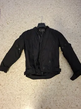 Chaqueta de moto con un diseño moderno y funcional. - Material textil resistente. - Cierre frontal con cremallera. - Cuello alto. - Mangas largas.