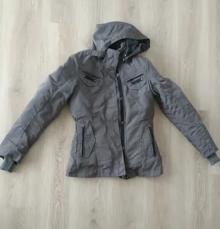 Chaqueta de moto para mujer, versátil para diferentes estaciones. Doble forro (para verano y invierno), capucha desmontable. Talla XS. Es totalmente nuevo, se usó solo 2-3 veces de trayectos muy cortas como 30-60minutos. - Diseño con capucha. - Cremalleras y bolsillos. - Puños elásticos.