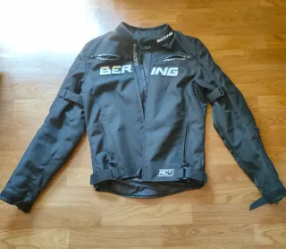 Marca Bering modelo Onyx Color Negro Talla M. En buen estado Fabricado en Poli 900D, de gran resistencia a la abrasión y a la rotura. Forro integral desmontable de aluminio térmico Forro interno de rejilla con membrana impermeable y transpirable en Bw2tech100+ laminado Protecciones de codos y hombros con certificación CE - YF Protector Protector de espalda Safetech con certificación CE, nivel 2 Sistema de ventilación ADS que permite el control de la ventilación gracias a sus cremalleras impermeables Cremallera de unión con el pantalón Chaqueta con certificación CE EPI