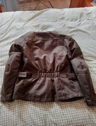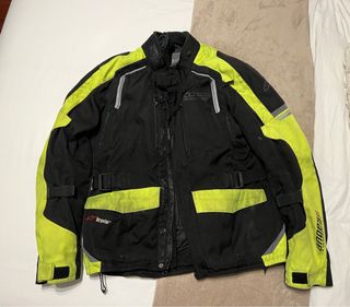 Poquísimo uso (usada por pasajera ocasional). Dudo que la usara más de 10-15 días en total. Descripción: Chaqueta impermeable y transpirable (Gore-Tex). Tejidos exteriores con impregnación de polímeros repelentes al agua y la suciedad. Protectores SAS-TEC en codos y hombros, certificados según EN 1621-1, Nivel 2. Protector de espalda SAS-TEC certificado según EN 1621-2, nivel 2. Forro térmico desmontable fabricado con DEXFIL®. 2 bolsillos exteriores. Bolsillos interiores, uno de ellos impermeable. Puños ajustados con GORE-TEX STORMCUFF®. Ventilación y reflectantes.