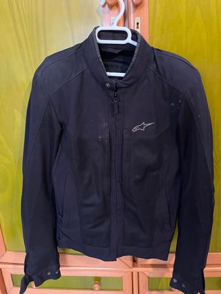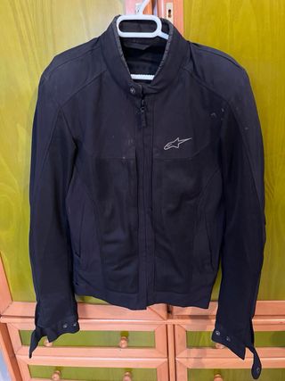 Chaqueta de verano de moto Alpinestars de cordura, con tela de rejilla para ventilación y protecciones - Talla S. - Diseño en color negro. - Cierre de cremallera frontal. - Cuello alto con cierre de botón. - Logo de Alpinestars en el pecho.