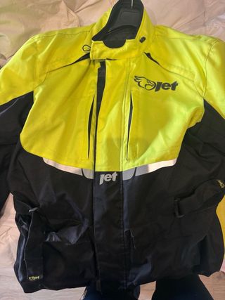 Chaqueta de moto JET en color amarillo flúor y negro, con detalles reflectantes para mayor visibilidad. - Diseño deportivo. - Cierre frontal con cremallera. - Bolsillos frontales.