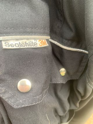 Chaqueta de moto con detalles reflectantes Scotchlite 3M. Ideal para iniciarse. tiene protecciones básicas de codos y hombros. - Color negro. - Cierre de botón a presión. sin roces ni roturas. es talla S y lleva forro interior desmontable.