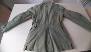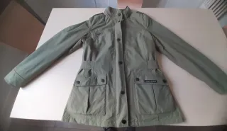 Antilluvia, con forro desmontable, certificada moto para CE, color verde oliva. Se puede usar para vestir. En la foto aparece algo arrugada porque ha sido lavada. Vendí la moto y con ella los accesorios