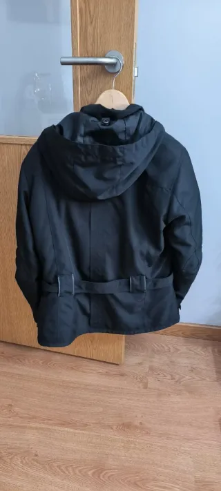 Chaqueta de moto Levior de gama alta en color negro. Tiene reparaciones de una caída, una bastante mal hecha, se ve en las últimas fotos (cola mal aplicada) pero se puede usar perfectamente, puesta no se ve. No tiene demasiado uso porque me gustan cortas. Con forro desmontable. Unión a pantalón. Detalles de todo en las fotos, están sacadas para verlos. Lo demás buen estado. NO negociable. - Múltiples bolsillos. - Cierres ajustables en mangas y cintura. - Detalles reflectantes en mangas y espalda.