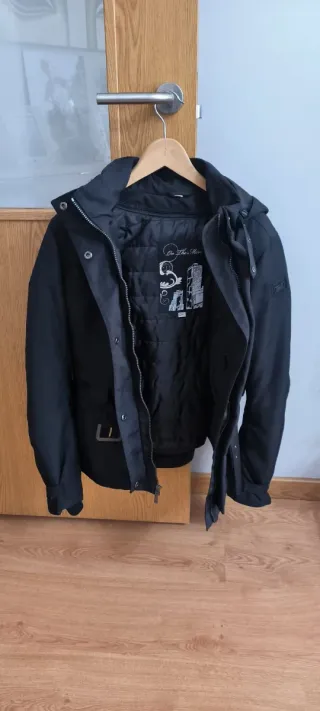 Chaqueta de moto de la marca Modeka en color negro. Diseñada para ofrecer comodidad y protección. La chaqueta se ha usado 5 veces contadas, está nueva. Incluye forro desmontable para invierno. - Cremalleras de ventilación. - Protecciones en hombros, codos y espalda. - Cinturón ajustable.