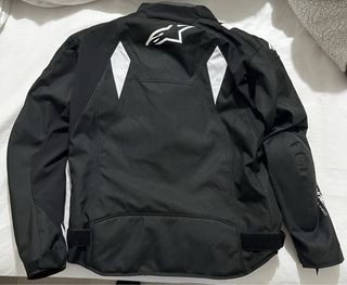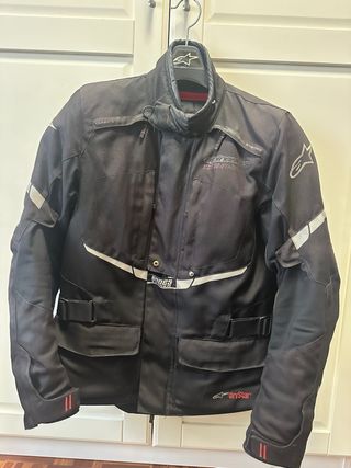 Chaqueta de moto Alpinestars de cordura en color negro, talla XL. Calidad excepcional. Diseño robusto elegante y funcional. Dos capas, corte largo Cinturón ajustable a la cintura. Múltiples bolsillos frontales con solapa. Cuello alto. protecciones en codos y hombros En excelente estado , poco uso . Solo en mano
