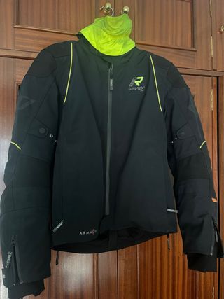 Vendo chaqueta rukka armarone talla 54 negra y flúor poco uso y en perfecto estado Tejido Cordura Gore-Tex® Pro de 3 capas 100% transpirable * El refuerzo del armacor en codos y hombros * Suave neopreno en cuello. * Dos bolsillos impermeables en el exterior con cremalleras. * Un bolsillo impermeable con cremallera en el interior, incluido un bolsillo para teléfono móvil * Protectores de hombros y codos Rukka D3O® Rukka D3O® Air All Protector de espalda, Forro interior desmontable termorreflectante con aislamiento de 60 g. * Cuello elástico Gore-Tex Mangas con cremallera, cierre de velcro y puños interiores impermeables Gore-Tex