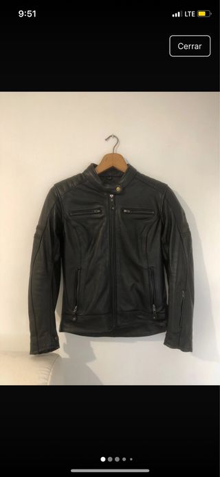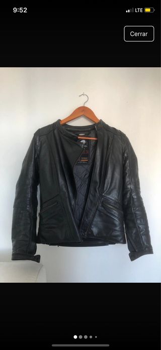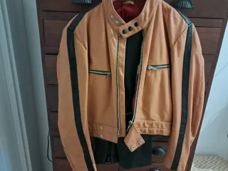 Esta casi sin uso El color naranja ed mas bonito que en la foto Talla mediana Sienta de maravilla Chaqueta de cuero para moto con detalles en contraste. - Color marrón y negro. - Cierre de cremallera frontal. - Bolsillos con cremallera.