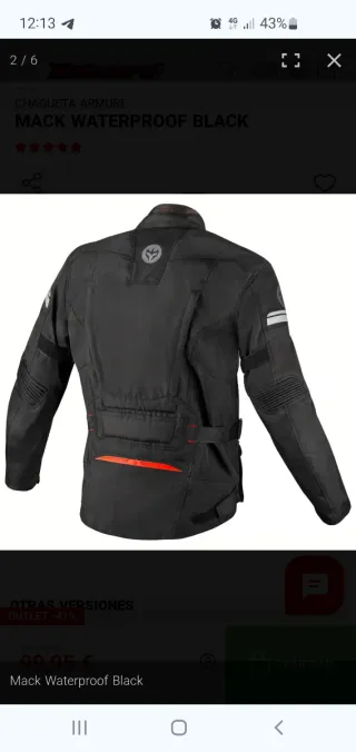 Chaqueta de moto Armure Mack en color negro nueva, diseñada para todo tipo de clima. - Diseño impermeable. - Cremalleras frontales y en bolsillos. - Ajustes en mangas y cintura. - Detalles reflectantes. Protección espalda incluida.