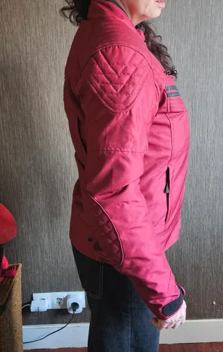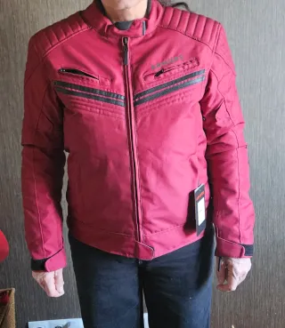 Chaqueta de motorista de la marca AETHER en color rojo. Diseño moderno con múltiples bolsillos y muy ajustable. Talla L o XL. Yo mido 185cm y soy delgado, me va bien. Vendo porque quiero llevar otro color. La tengo en Bilbao por si la quieres probar. Tiene algún desperfecto superficial y necesita que se le pase un paño. Ver fotos. Protección completa: hombros, espalda, codos y torso (pecho). Buena para tiempo frío con un forro debajo. La marca es muy buena. Nueva debió de costar un buen pico (es un regalo, así que no lo sé)
