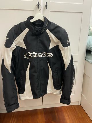 Chaqueta de cordura Alpinestars en color negro y blanco. - Diseño deportivo. - Cuello alto. - Cierre de cremallera. Talla XL , mido 1,82 y 83 kg “ por si vale de referencia “