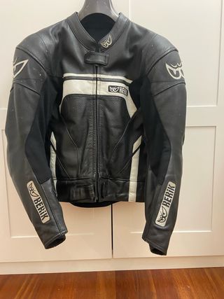 Chaqueta de cuero de la marca Berik, ideal para motociclismo. Diseñada para ofrecer protección y estilo. - Material: Cuero - Marca: Berik - Incluye protecciones Yo mido 1,83 por si puede servir de referencia.