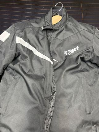 Chaqueta de moto de la marca Jet, en color negro. Está en buen estado y es ideal para protegerte mientras conduces. - Marca: Jet - Color: Negro - Diseño deportivo - Bolsillos con cierre