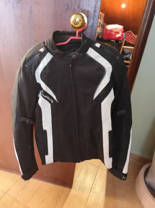 Chaqueta de moto negra y blanca con protecciones,coderas y espalda!! - Diseño deportivo. - Cierre de cremallera frontal. - Puños ajustables. - Bolsillos con cremallera. -Talla M y tengo otra XL igualitaal mismo precio -Poco uso!!!